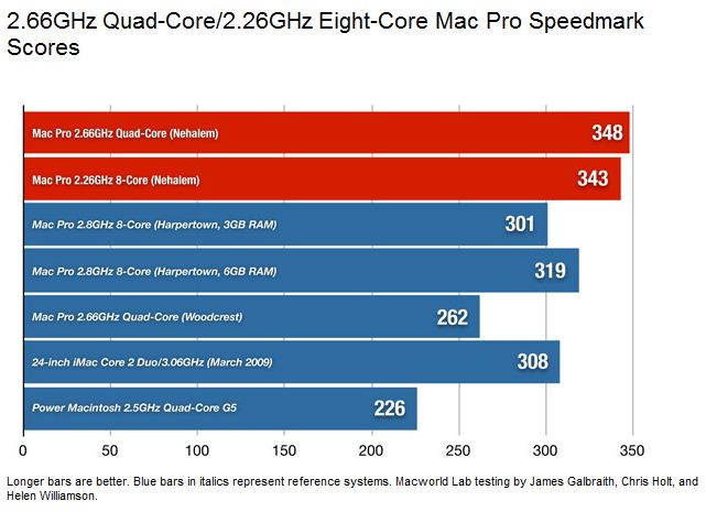 잘 보시면 2008년 첫 출시되 2009년까지 판매된 구형 2.8 옥타 (4코어2개) 는 신형인 2.66 쿼드보다 훨씬 느립니다.