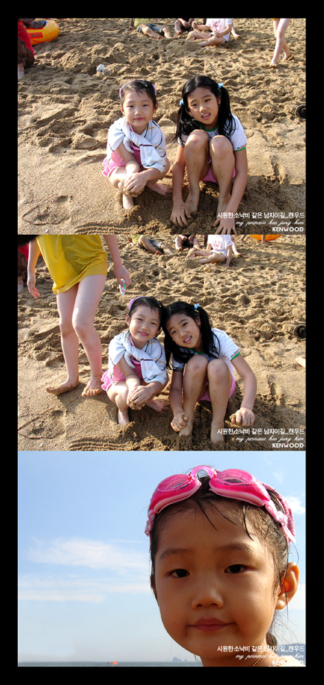 모래만 보여서.. 해운대라고 인정할수 없음 ㅋㅋ 파라솔 틈을 비집고 다니는..치킨도 드셨나요? ^^ 자꾸 보니까.. 희정이가 캔님을 마니 닮았네요..ㅋㅋ