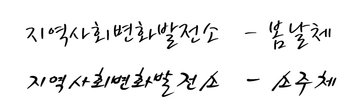 소주체 또는 봄날 서체 부탁드립니다 김은주 일반 0 3815 2009.04.07 10:49 -0001.11.30 00:00 아웃라인.ai (0byte) + 36 > > 소주체와 봄날 서체 부탁드립니다. > 매번 급하게 부탁드리네요~ > > 문구-<지역사회변화발전소> > > 감사합니다 >