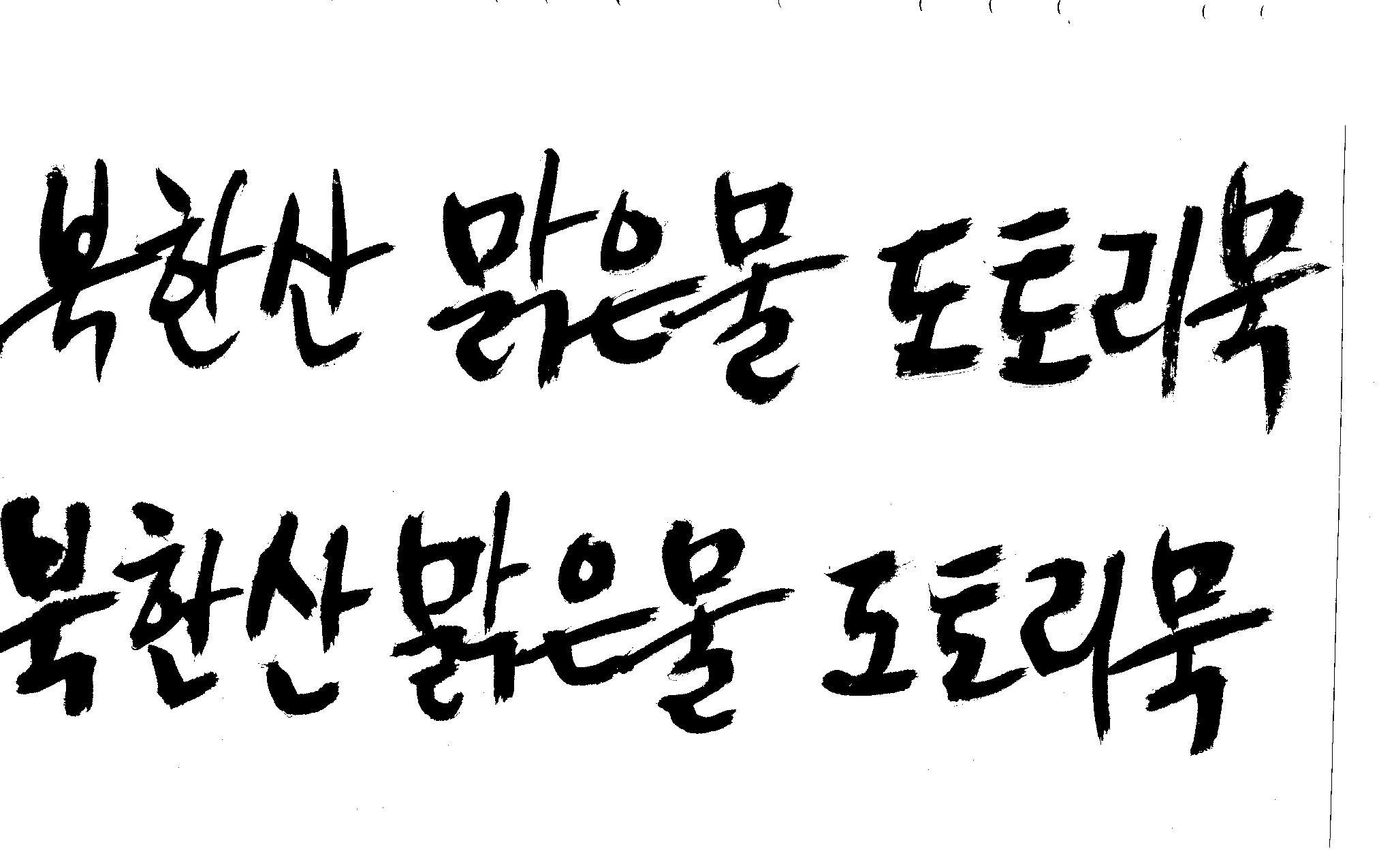안녕하세요~캘리 좀 부탁드릴께요~ 김철호 일반 1 8973 2008.12.12 09:43 > > > > > 반갑습니다. ^^ > > 캘리 좀 부탁드려도 될까요~ > > 북한산 맑은물 도토리묵 > > 감사합니다. ^^ > > > 유용하게 쓰세요.. >