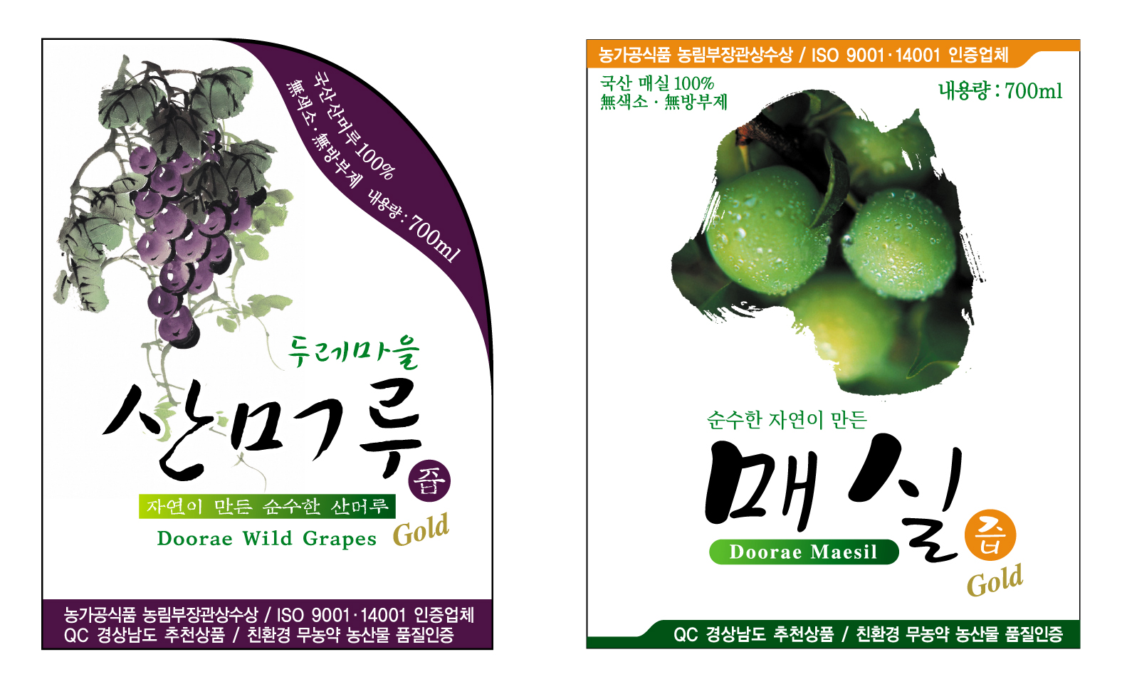 염치없지만 캘리그래피 부탁드립니다. 양진석 일반 1 9839 2009.02.20 14:07 안녕하세요. 김철호님. 염치없지만 부탁 좀 드리겠습니다. 다름이 아니라 농산물 라벨을 진행중인데 제품명을 캘리와 비슷한 일반 컴퓨터 서체로 했는데 업체에서 뭔가 부족하다는군요. 그 부족함을 김철호님께서 채워주셨으면 합니다. 제품명은 두레마을 산머루즙, 매실즙 입니다. 첨부화일에 진행중인 시안 올립니다. 참고해 주세요. 감사합니다.^^