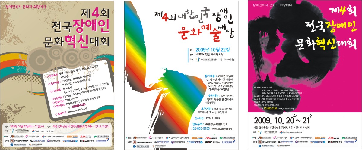 캘리 부탁좀 드려도 될까요? 길선진 일반 3 6643 2009.05.19 11:03 포스터에 제목을 좀 쓰려고 하는데요!!! 제4회 전국장애인문화혁신대회, 제4회 대한민국장애인문화예술대상 요렇게 두개만.. 부탁좀..드리겠습니다. -------------------------------------- 2절 포스터에 사용할 캘리입니다. 대충 컨셉은 첨부파일 정도로 하려고 합니다^^아직 수정하고 있는 단계라.. 미흡한 점이 많습니다.... 예인님 제가 미쳐 글을 보지못했네요^^ 죄송합니다!! 필요한거는 요번주 안으로다가 되면 좋겠지만... 바쁘시다면...조금 늦어져도 상관은 없습니다. 도와주세요~~~~