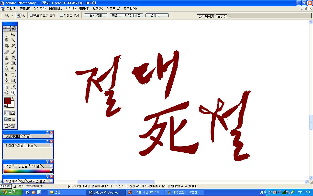 정중히 캘리 부탁드립니다. -_- 류재철 일반 0 6290 2009.11.16 11:18 실력자 분들이 많이 계셔서 이렇게 염치없게 부탁드립니다. - 절대死절 : 첨부한 파일 참고해주시면 감사하겠습니다.(약간 거친느낌? ^^;;) : '절'자의 ㅈ은 가위로...^^;; : 포스터 제작용이라 ai 파일이 필요합니다. 대학동아리 연극공연 포스터로 쓸 예정입니다. 비상업적인 공연이라 이렇게 부탁드립니다.