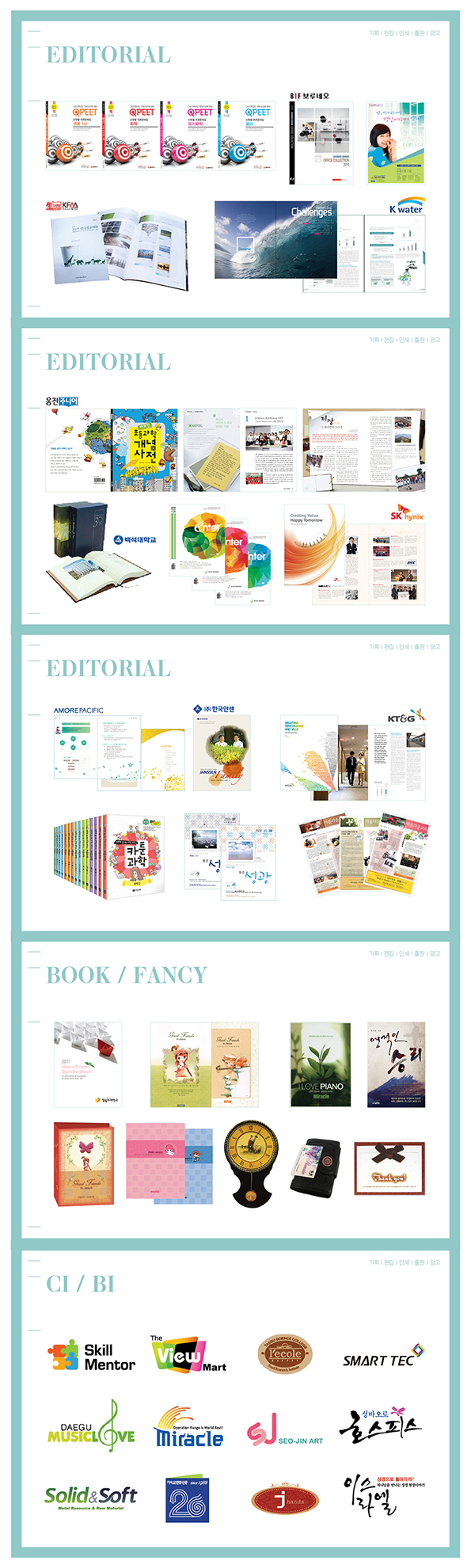 - 기타 : 잡지, 브로셔, 사보, 각종 도서 & 북커버, 교재(학습지), 교회디자인 등 다수.