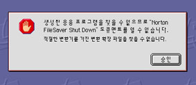 아마도 노턴 유틸리티의 여러 기능들을 사용하도록 모두 설치를 하였는데 그 중 일부 파일이 유실이 되어 지금의 메세지가 나오는 것으로 여겨지니, 우선 한글 시스템의 조절판과 확장 파일 폴더에서 노턴 관련 파일들을 모두 제거를 해주시되, 확장 파일 폴더에 Norton SharedLib라는 파일 하나만은 꼭 남겨 놓으시기 바랍니다.