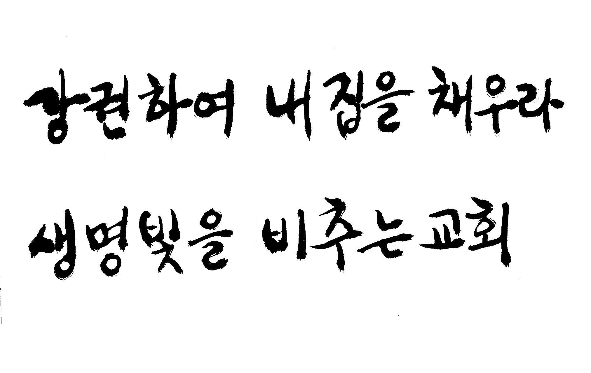 캘리 좀 부탁드립니다.^^ 감사합니다. 김철호 일반 0 6177 2009.01.06 22:42 > > 교회에서 사용할 표어 제목입니다. > > 2009 강권하여 내 집을 채우라! > 2009 생명 빛을 비추는 교회 > > 예쁘게 부탁드려요! 새해 복 많이 받으세요!! ^^ > "2009"는 2쪽에 이소영씨 캘리요청에 올려 놓은것을 쓰세요 " 생명빛을"인데 "생명의 빛"이라고 했는데 편집하세요